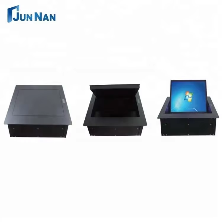 会議テーブル用のフリップアップLCDスクリーンフリッパーモニターリフト、このモニター リフトは、高度な会議ソリューション用に特別に設計されています。 AV 会議、軍事指揮、マルチメディア教育、財務分析システムなどで広く利用されています。特にデータ、画像、音声などの膨大な情報の交換・共有に便利で先進的なソリューションを提供します。安定した性能、自動運転、省スペースなどを特徴とするモデルです。独自の総合機能により、会議コミュニケーションや情報交換を効率的で楽しい体験を提供します。厳格な品質管理と製品検査体制により、製品の品質も保証されており、フリップアップ LCD スクリーン フリッパー モニター リフト