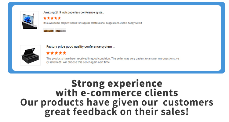 当社は、研究開発、流通、販売および関連サービスを備えたワンストップのオフィス会議機器ソリューションに加え、ペーパーレス会議システムの研究開発生産ライン用の高品質の格納式電動モニターリフトテーブル、最新の会議ソフトウェアシステム、強力な設計チーム、優れたアフターサービスチームを備えています。当社のペーパーレス会議システム用格納式電動モニター昇降テーブルは、主にハイエンドの行政機関、大規模会議、各種高級ホテル、オフィスビル、研究所、銀行、政府プロジェクト、会議室システム統合などで使用されており、当社の会議ソフトウェアは100以上の国と都市に輸出されており、世界中で高い評価を得ています。私たちは、革新的な製品、競争力のあるペーパーレス会議システム購入割引、完璧なサービスにより、中国淳南ペーパーレス会議システムが市場と顧客の獲得に全力を尽くしていると確信しており、より良い明日を楽しみにしています。